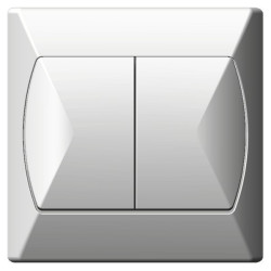 Łącznik podwójny biały ŁP-2A/00 serii Akcent, firmy Ospel. Łącznik świecznikowy, czyli dwuklawiszowy włącznik światła w kolorze białym umożliwia włączanie dwóch różnych źródeł światła (obwodów oświetleniowych). To praktyczne rozwiązanie dedykowane jest do użytku wewnątrz pomieszczeń (IP20). Seria Akcent charakteryzuje się budową monoblokową (osprzęt jest od razu z ramką wykończeniową). Łączy w sobie geometryczne kształty i prostotę wykończenia, które doskonale sprawdzą się w każdym wnętrzu.