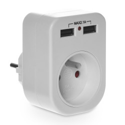 Rozgałęźnik R-1USB biały 1x2p+z/2xUSB W-01146 Plastrol. Praktyczny rozgałęziacz pozwalający na wpięcie 3 urządzeń elektrycznych – do wspólnego gniazda zasilania. Rozgałęźnik W-01146 wyposażony jest w 3 gniazda: 1 gniazdo wtyczkowe okrągłe z uziemieniem i przesłonami torów prądowych oraz 2 gniazda USB.