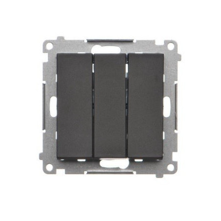 Przycisk zwierny potrójny TP31.01/149 czarny mat Simon55 Kontakt-Simon. Niezawodny element systemu elektrycznego, który umożliwia kontrolę nad zasilaniem różnych urządzeń elektrycznych. Dzięki zastosowaniu wysokiej jakości materiałów oraz precyzyjnemu wykonaniu, przycisk ten zapewnia nie tylko niezawodność działania, ale także estetyczny wygląd, który doskonale wpisuje się w różnorodne aranżacje wnętrz.