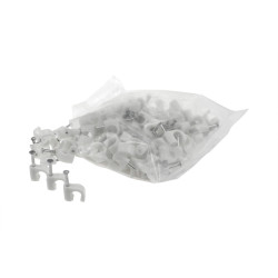 Uchwyt kablowy okrągły z gwoździem NFO-7 biały typu FLOP-7 (100 szt.), firmy Next. Uchwyty kablowe marki NEXT przeznaczone są do szybkiego mocowania przewodów. Hartowany gwóźdź ułatwia montaż na różnych podłożach (drewno, gazobeton, itp.). Budowa uchwytów pozwala na montaż przewodów okrągłych i płaskich o różnych rozmiarach.