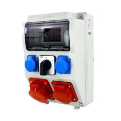Rozdzielnica NBOX19.1 została wyposażona w 1 gniazdo siłowe 16A 5P, umożliwiające podłączenie urządzeń trójfazowych, oraz w 2 gniazda 230V, pozwalające na zasilanie urządzeń jednofazowych. Wszystkie gniazda zabezpieczone są przed przypadkowym kontaktem, a wygodne rozmieszczenie pozwala na szybki i łatwy dostęp do punktów zasilania.
